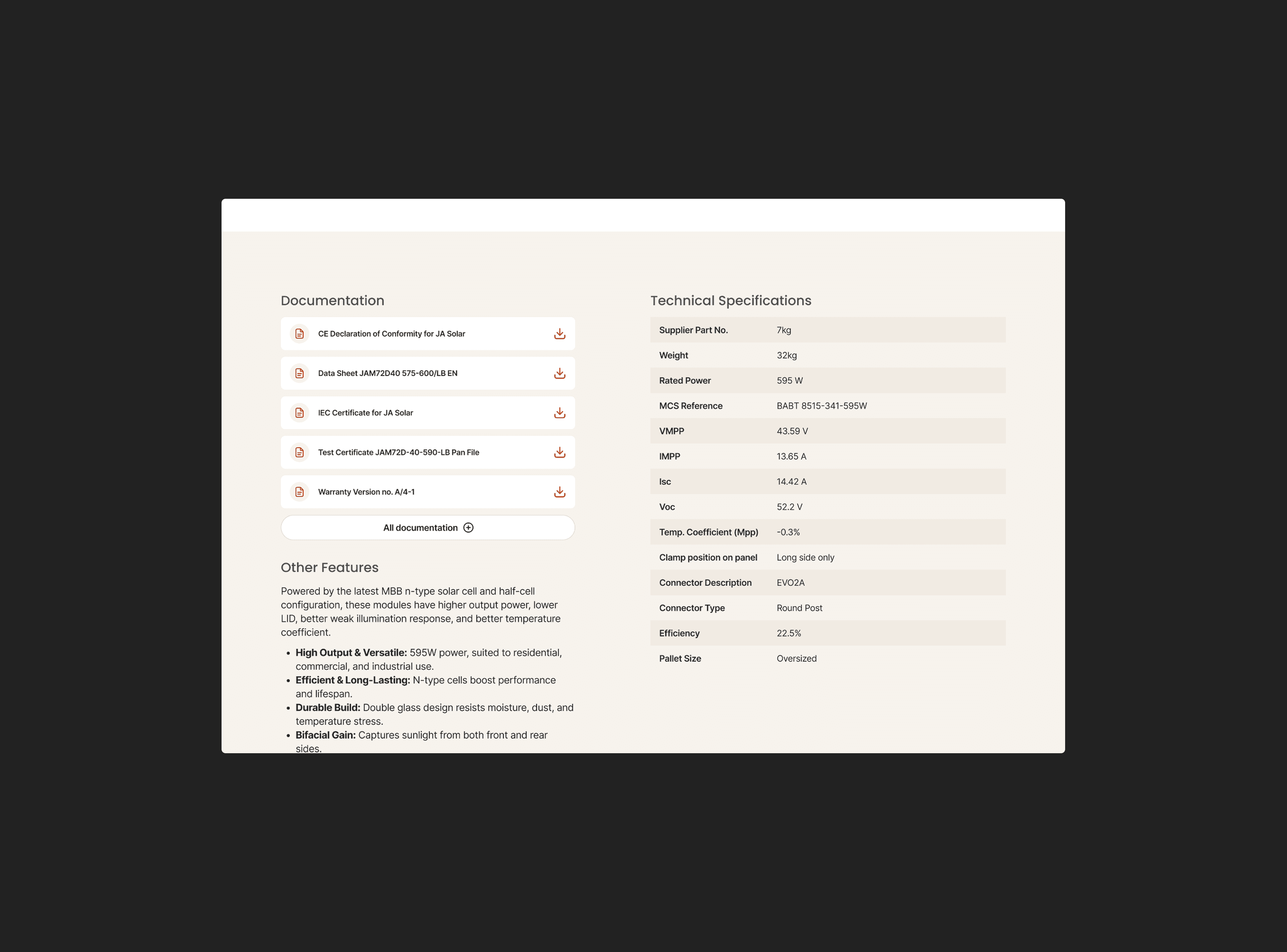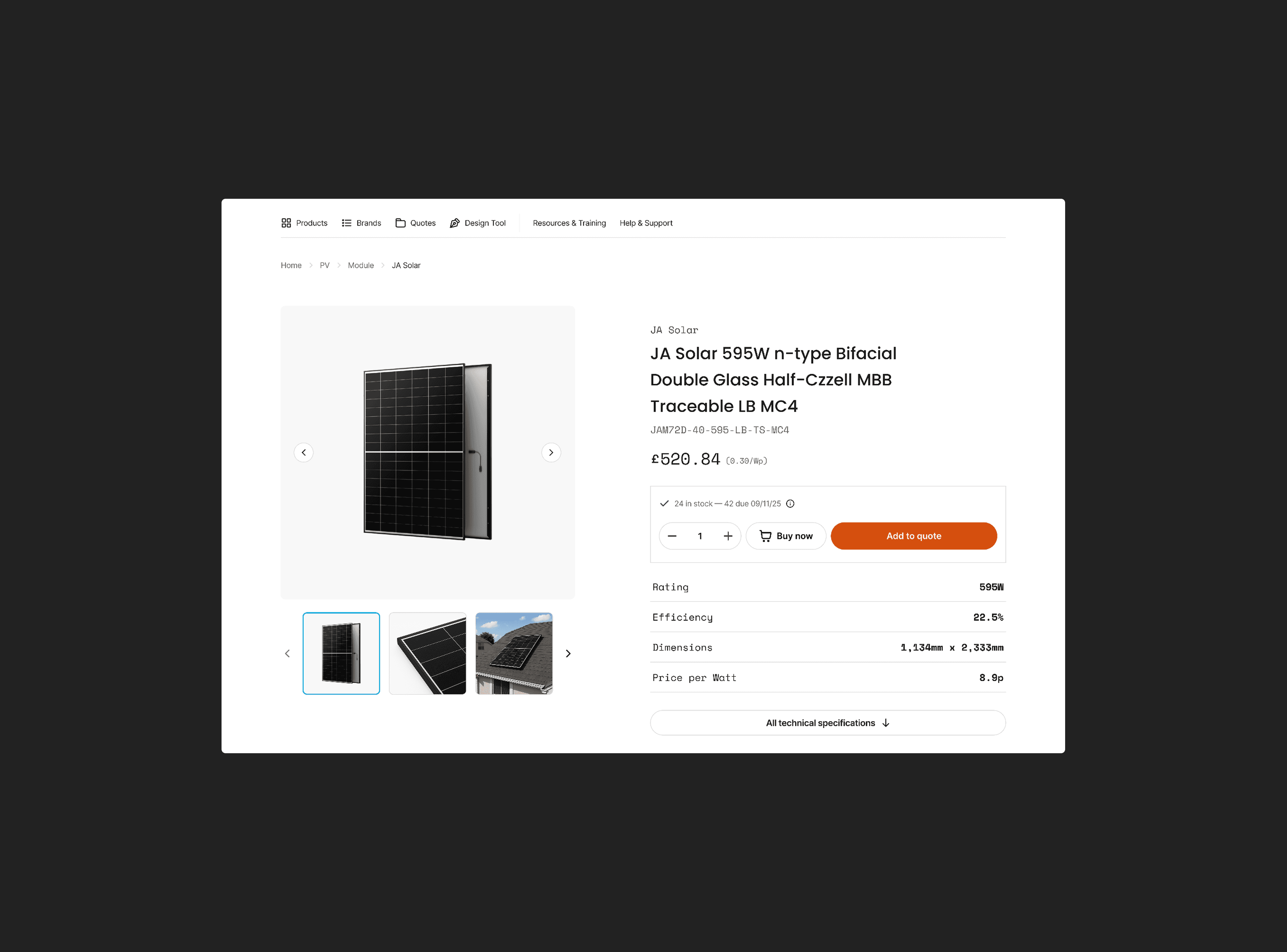 Installers needed compatibility reassurance and visibility of required components before committing to high-value system builds. I restructured the PDP hierarchy to prioritise compatibility, core technical specifications and trade pricing, introduced contextual add-ons and related products to support complete system purchasing, and simplified technical data presentation to reduce cognitive load, improving decision confidence and supporting fuller builds within a single transaction.