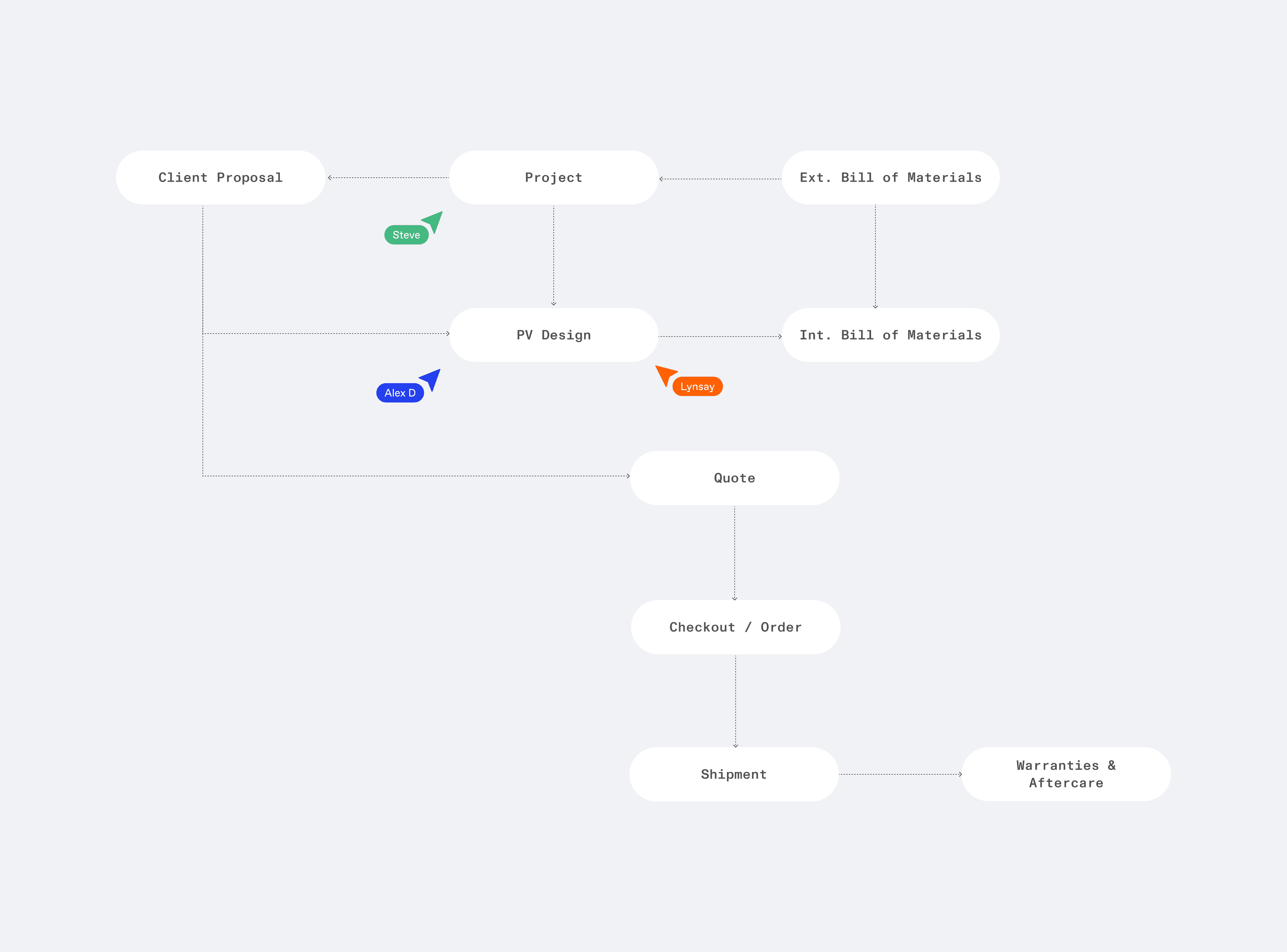 An example of a workflow diagram created from a product workshop.