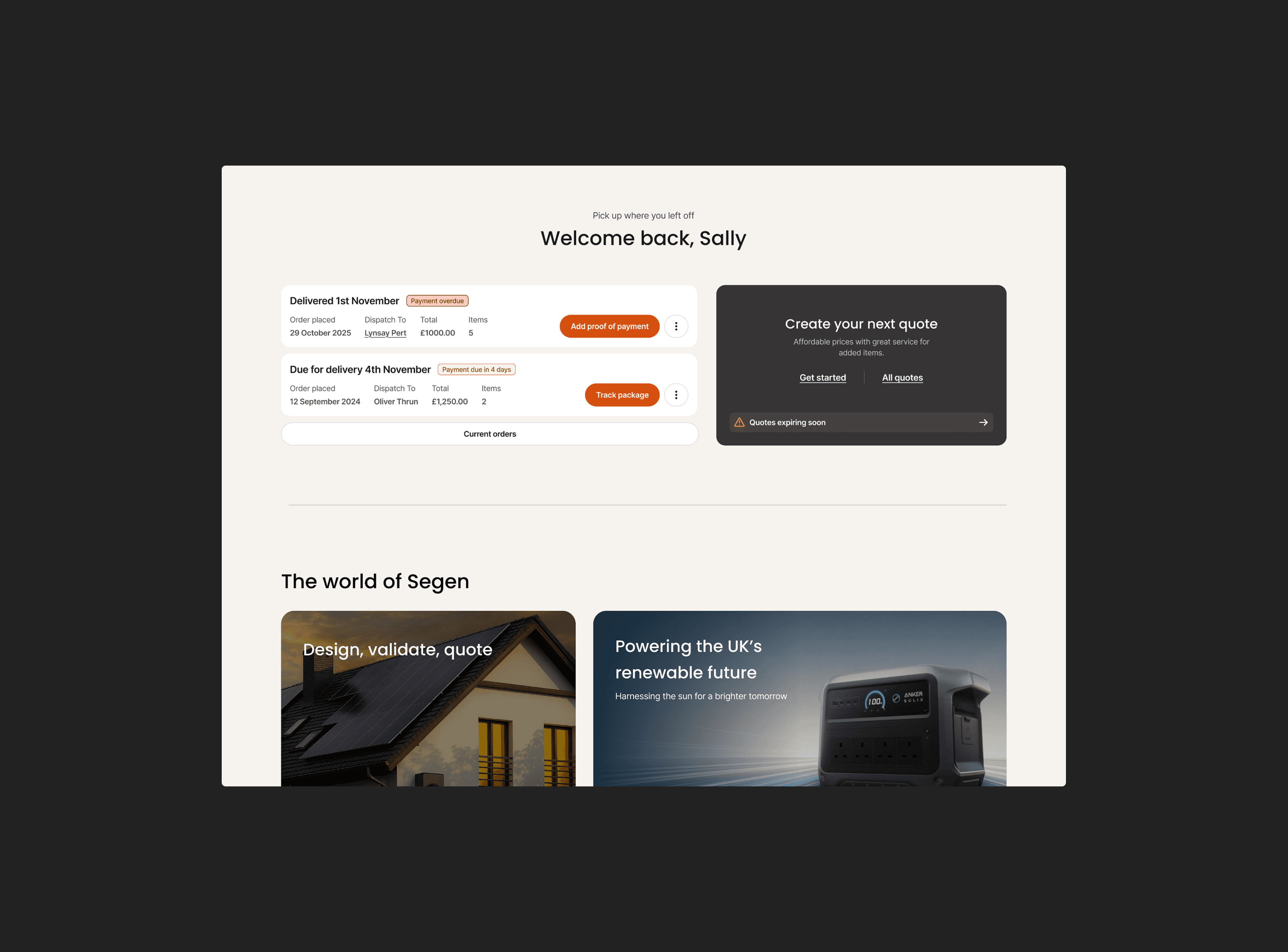 Segen is the UK's largest renewable energy distributor, serving trade and commercial installers across a legacy ecommerce portal and a solar PV design platform. The platform migration had just kicked off when I joined - workflows across discovery, configuration, quoting and fulfilment had grown independently of each other, and the handoffs between them were breaking down.